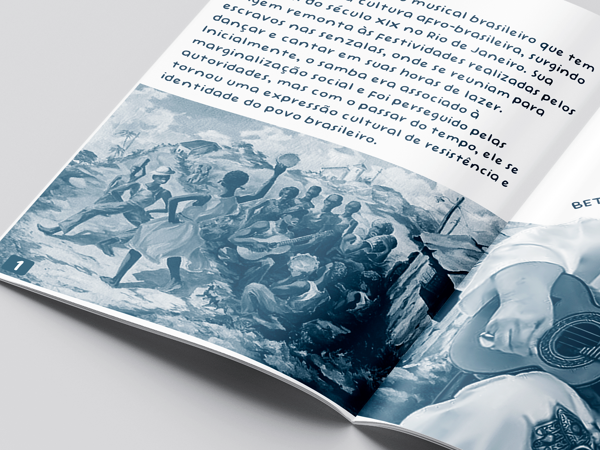 ENG "PAGODEANDO IN SAMBA" IS A ZINE THAT PRESENTS A BIT OF THE HISTORY AND CULTURE OF BRAZILIAN MUSIC, WITH A FOCUS ON SAMBA. IT OFFERS A UNIQUE MIX OF HISTORY, ART AND TECHNIQUE, INCLUDING INFORMATIVE ARTICLES AND A CAREFUL SELECTION OF IMAGES AND ILLUSTRATIONS.