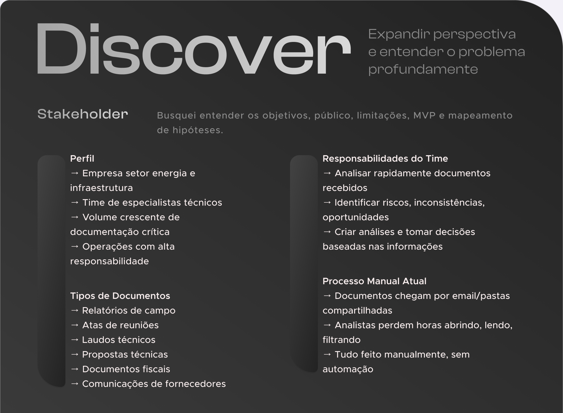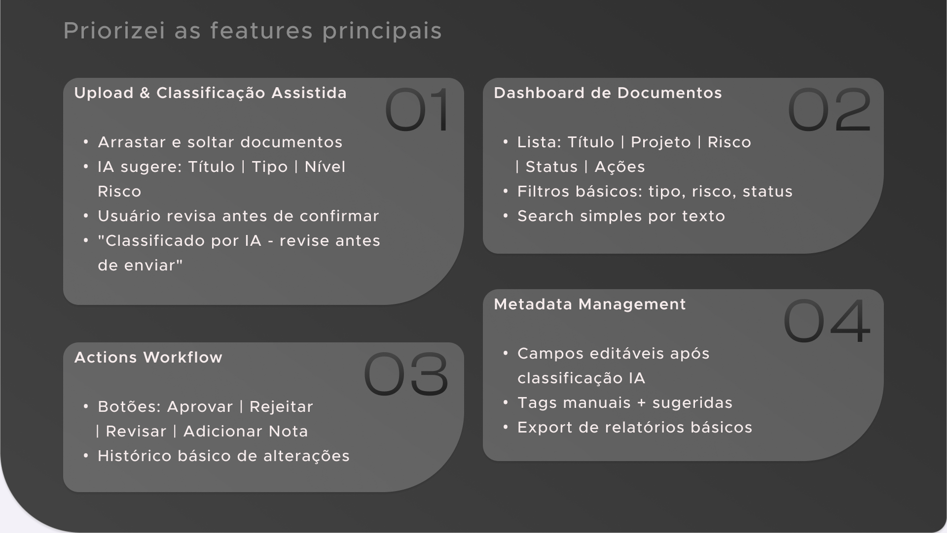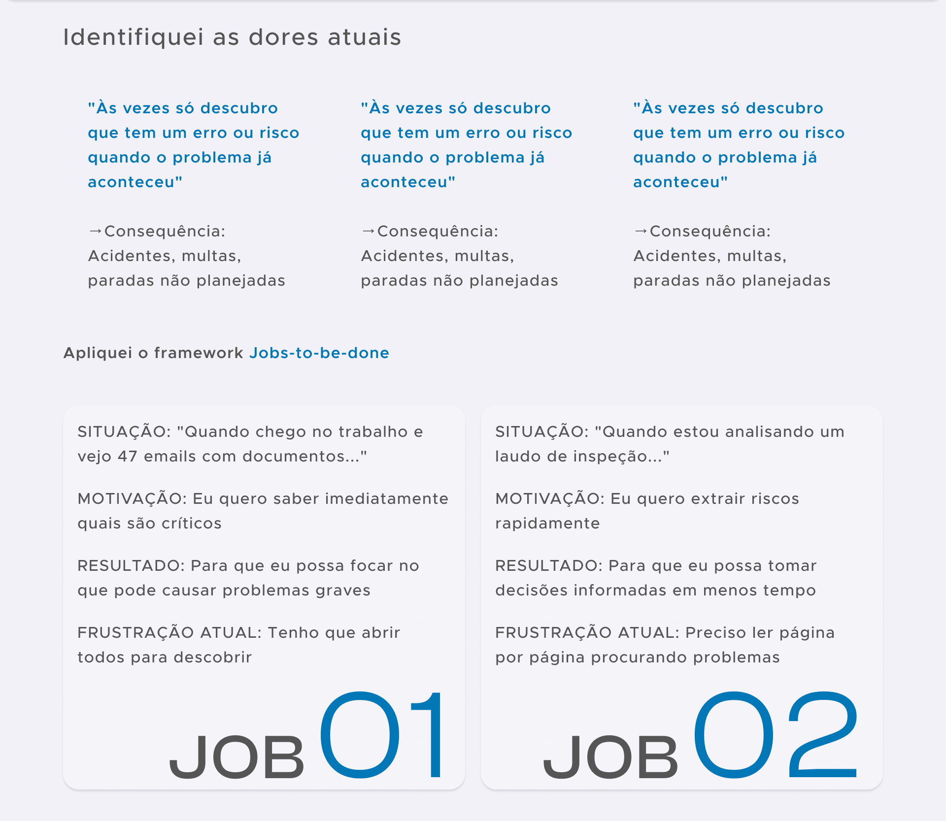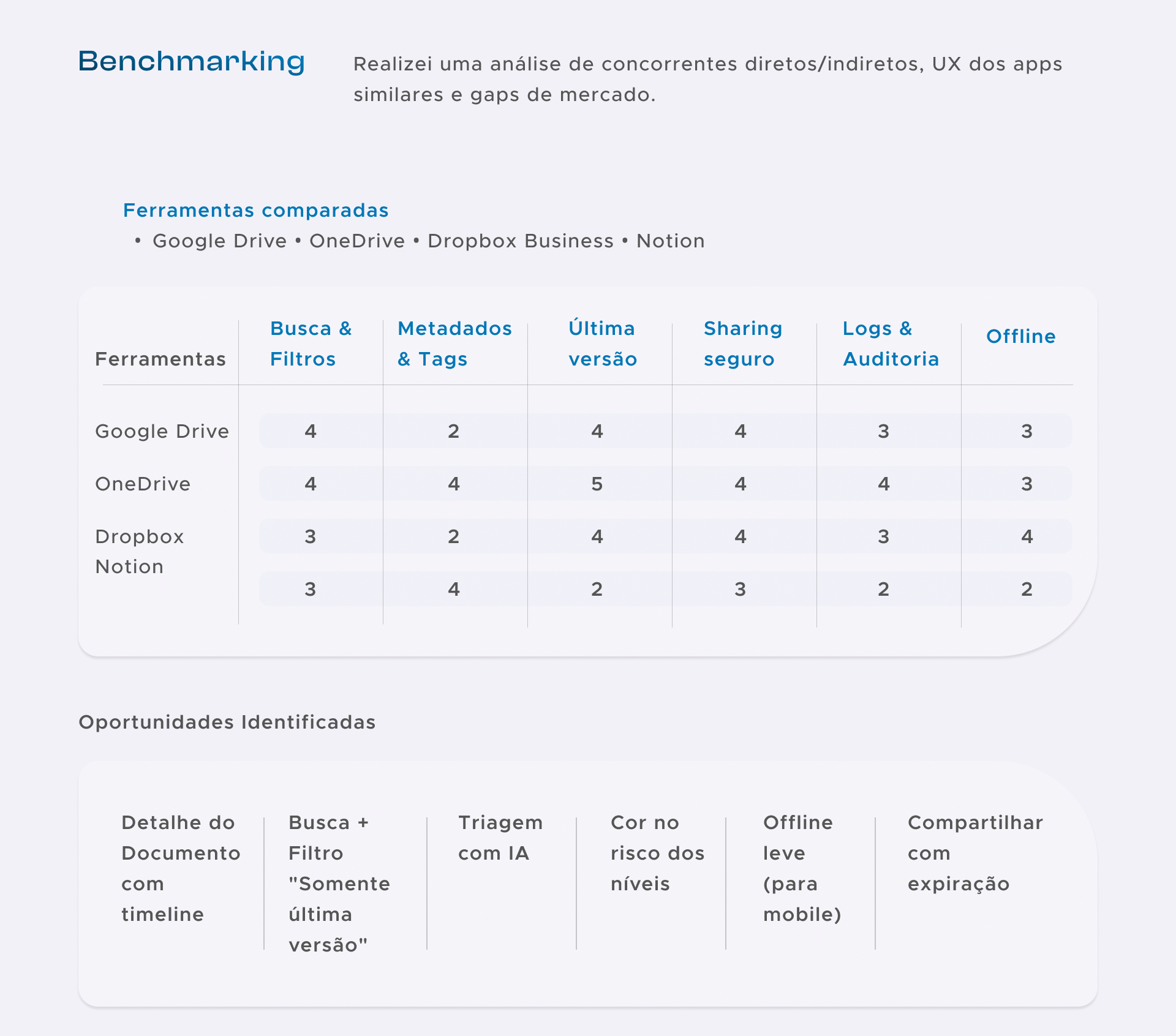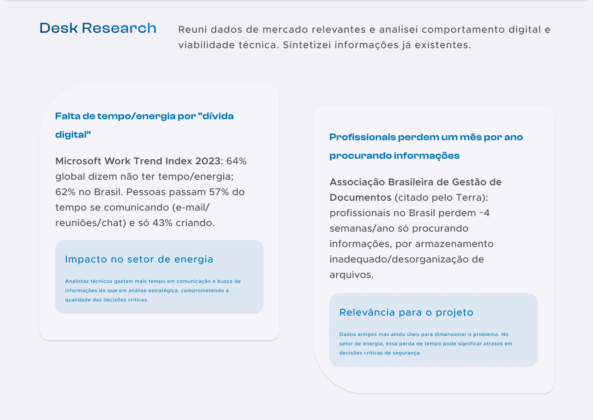 ENG This case study presents a UX Design MVP with AI for analyzing critical documents. Using methodologies such as Double Diamond and JTBD, the project reduced research time and increased decision-making confidence. The project involved benchmarking, personas, user journey, and prototyping, creating a simple and viable solution for high-pressure contexts.